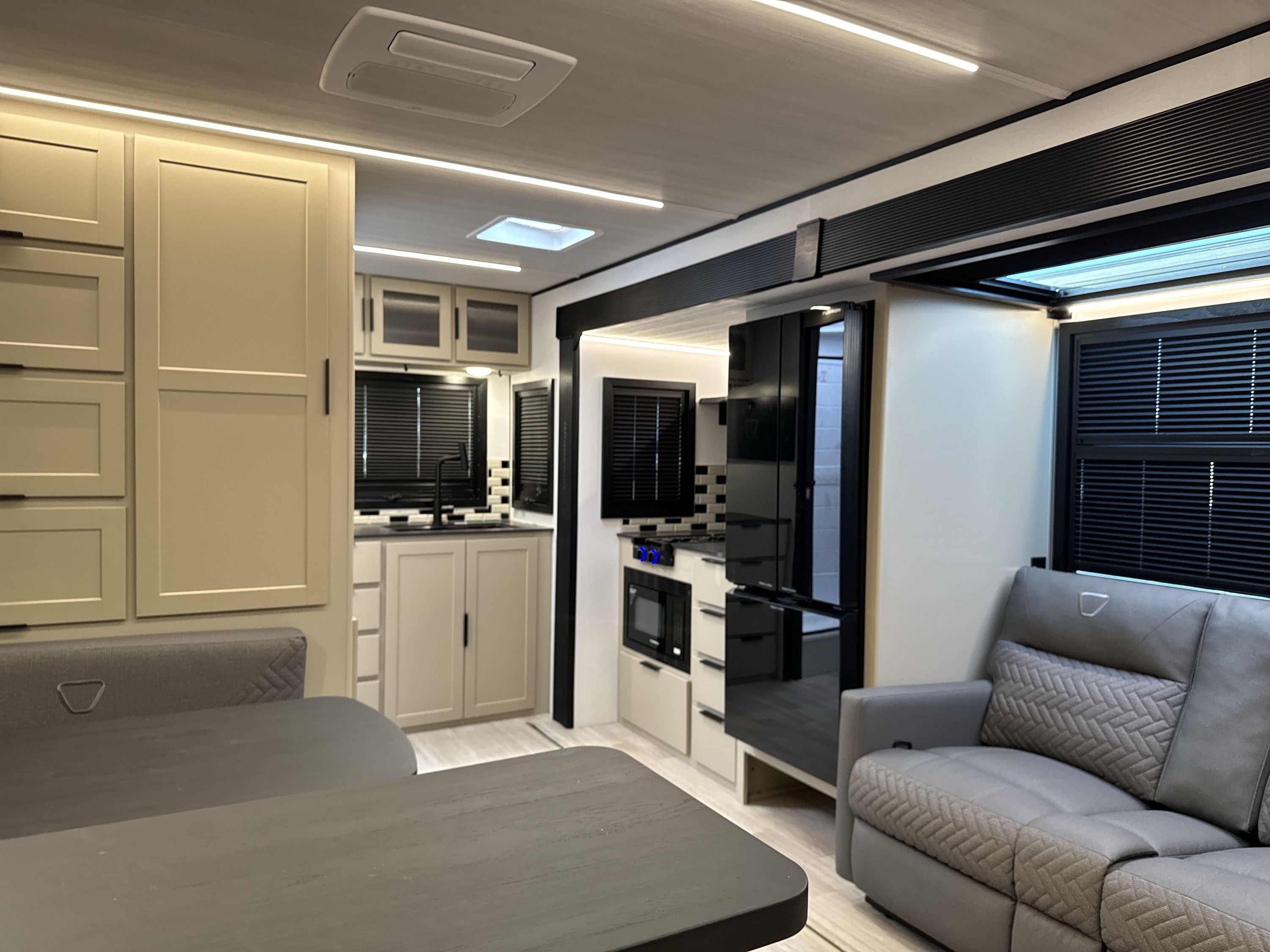 Very unique, the slide-out on the Walkabout 22MAX sports windows… and skylights! This will give you a great spot to relax on the comfy furniture and stare at the stars.