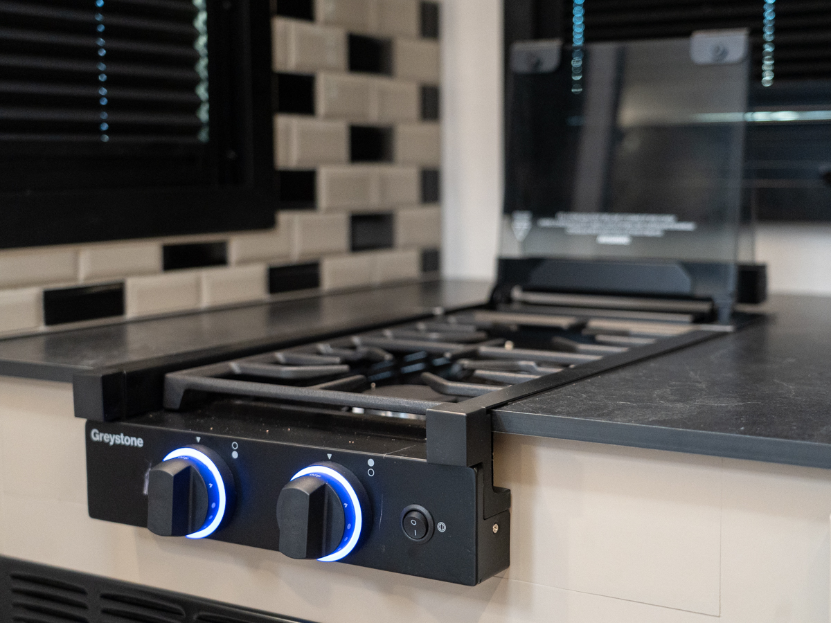 The high-output 2-burner cooktop found in the Keystone Walkabout 22MAX helps get some vital vittles into your body for your day’s adventures.